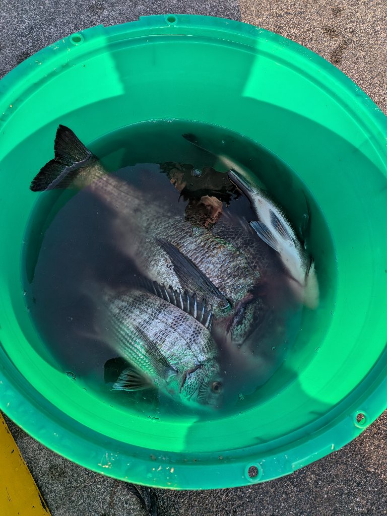 岩田さん 43センチ頭に3枚 オキアミ、コーン