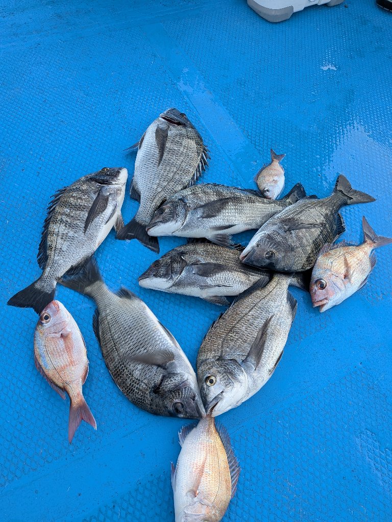 岩田さん チヌ7枚 今日はサイズも測れず、当たりエサも聞けませんでした。すみません。